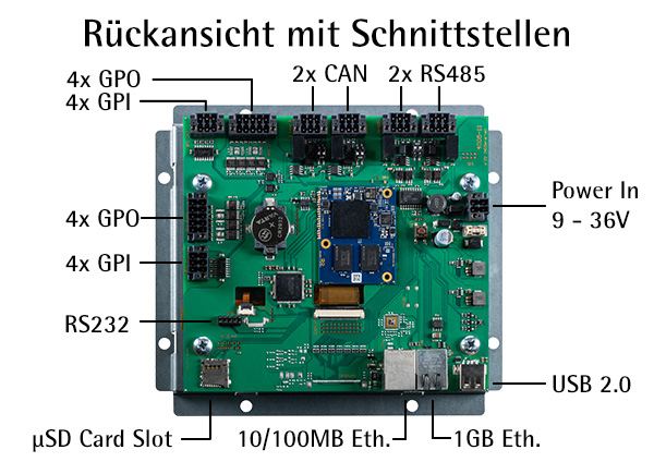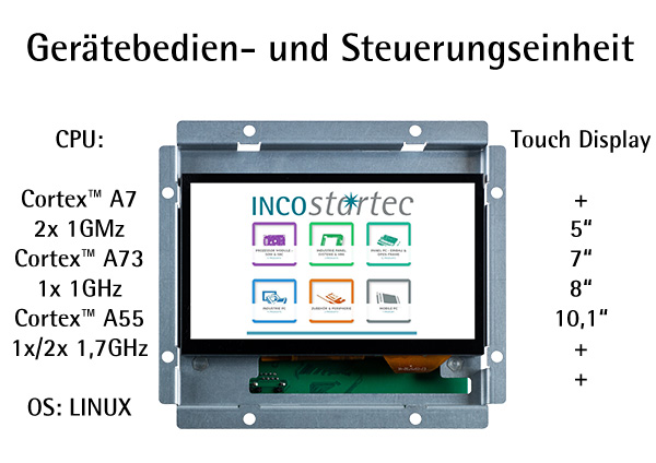 Gerätebedieneinheit mit pCAP Touch Display und Schnittstellen für Kleingeräte-Steuerung.